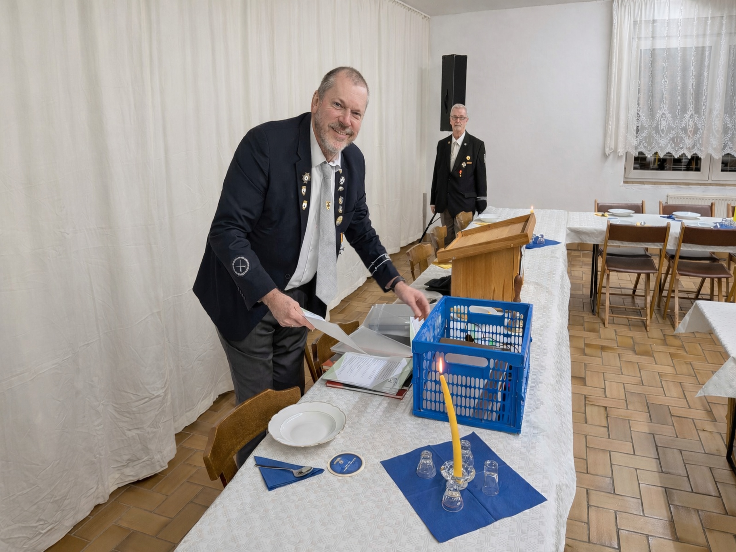 Der Schriftführer Thomas Mattmüller bereitet die Versammlung vor