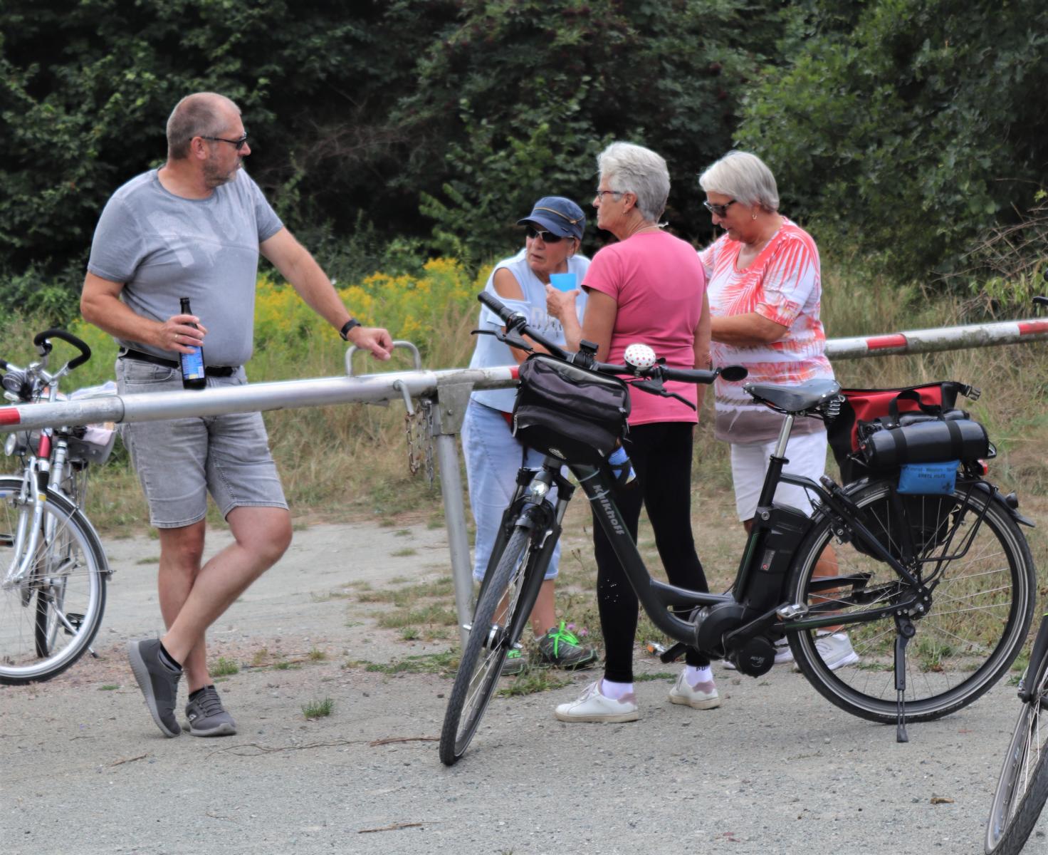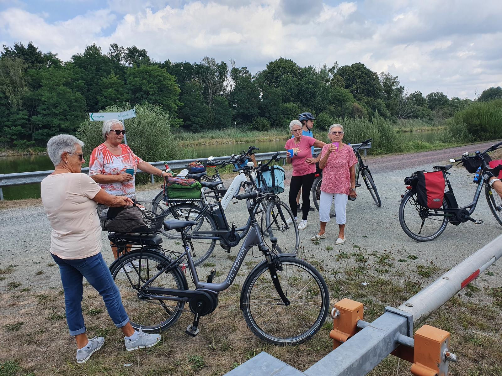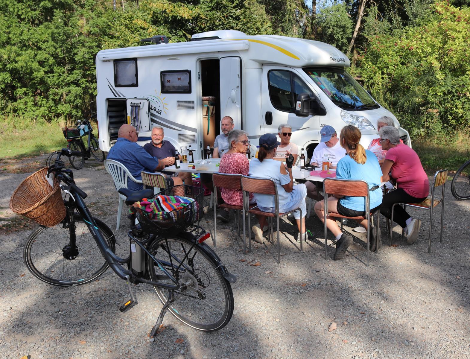 An einem herrlichen Sonntag trafen sich insgesamt 11 Kyffies bei Christa und Fred zur Abfahrt in den Drömling. Da es nicht darum ging viele Kilometer abzuradeln, sondern einen schönen gemeinsamen Tag zu erleben, wurden gelegentlich kleine Pausen gemacht, um dann in Breitenrode einen längeren Halt mit ausgiebiger Versorgung einzulegen. Wolfgang steuerte das Versorgungsmobil und wartete mit der nötigen Ausstattung und den Versorgungskörben am Teich. Hier konnten sich alle etwas erholen und natürlich auch stärken bevor es dann weiter ging.